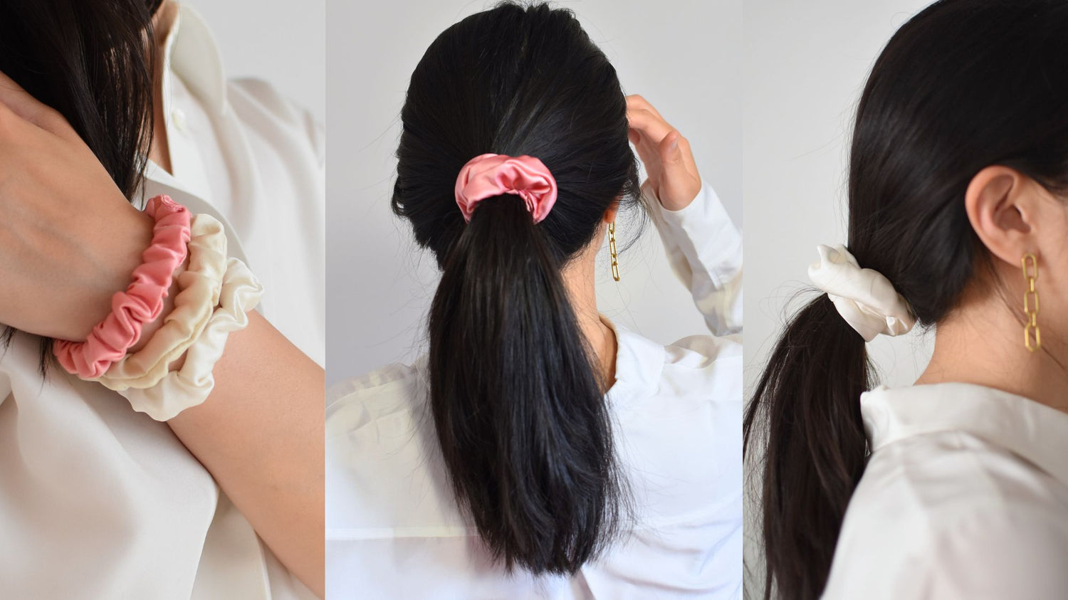 Découvrez notre collection de chouchous 100% pure soie française, issue de stock...